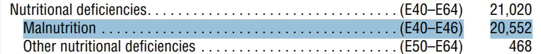 In the United States, more than 20,000 people died from malnutrition in the latest year with figures available (2022), according to the CDC: